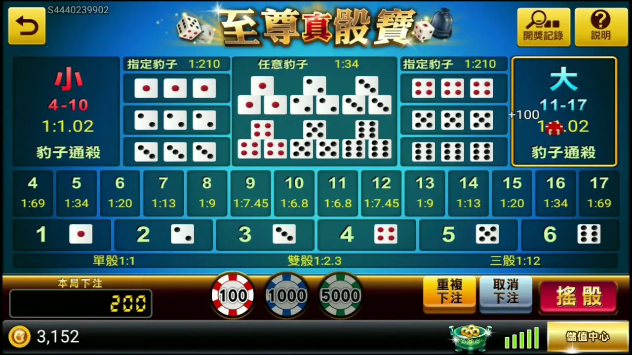 从 4 到 17 的具体点数均可下注,不同点数拥有不同赔率,是策略型玩家的常用玩法。