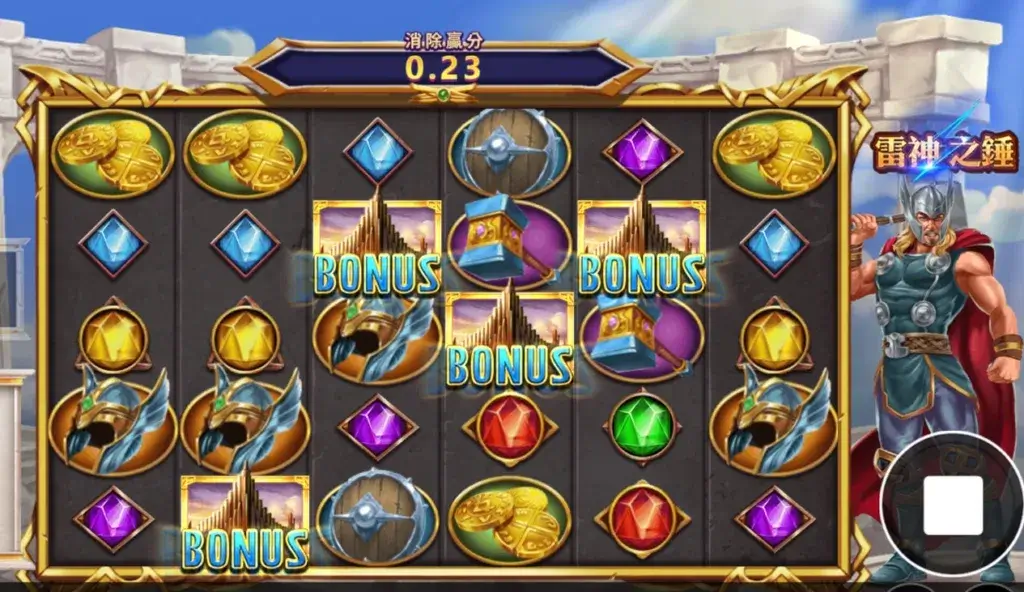 《雷神之锤》采用五轴三排设定,具备243种连线方式,提升整体中奖节奏与玩法节奏感。符号设计与神话高度契合,包括雷神锤、雷云符文、神之盾、符文战盔等,每一种都有其独特效果与意义。